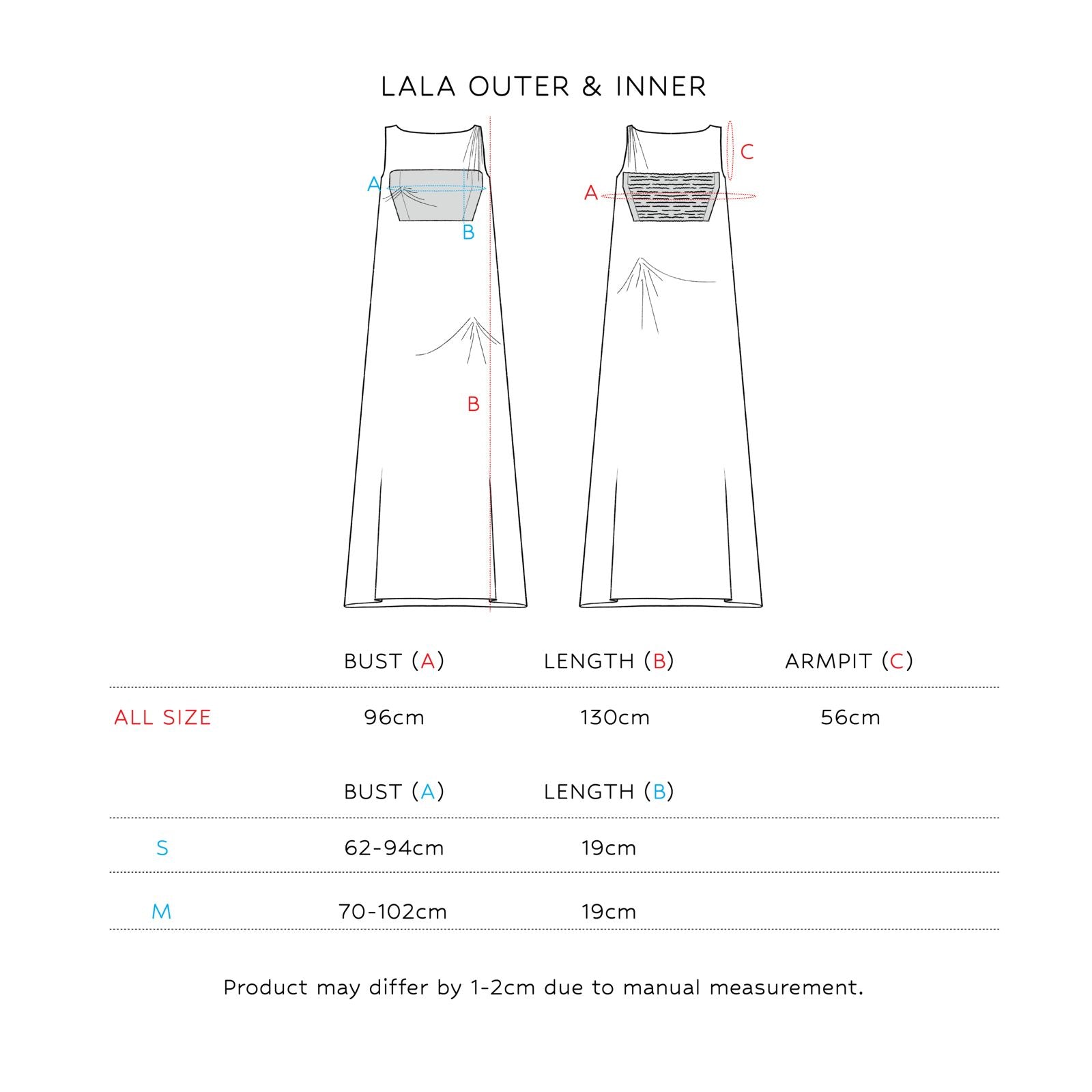 Lala is an A-line tulle maxi outer dress with scrunched details on the shoulders and along the body. It includes a reversible tube top with a smocked back for a comfortable fit and can be worn on either side. Available in red–pink and sky–lime, Lala is ideal for layered styling.